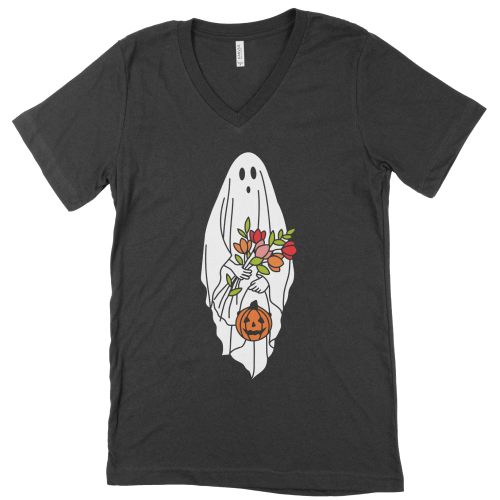Cute Halloween Ghost Women’s Jersey V-Neck T-Shirt