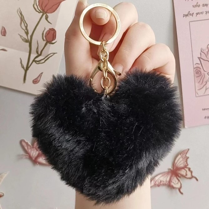 Introducing our adorable Cute Heart Keychain Pom Pom, the perfect accessory to add a touch of charm to your bags, keys, or even cars! Crafted with faux rabbit fur in a delightful heart shape, this keychain is a must-have for every fashion enthusiast.
