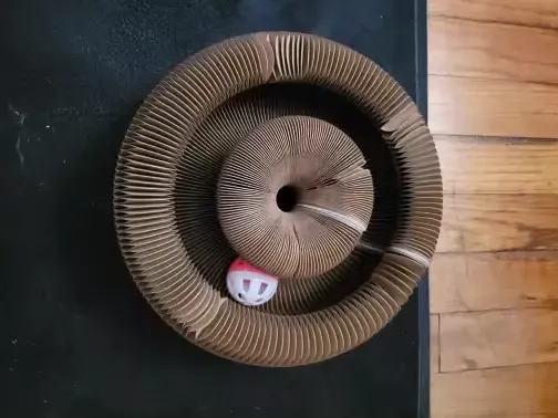 My cats are absolutely in love with this scratch board. It’s more than just a simple scratch post—it’s their new favorite playground! The corrugated surface is ideal for their claw grinding needs while the bell toy keeps them engaged and entertained. I particularly appreciate its foldability which makes it easy to store when needed, and being able to connect two boards together provides even more space for them to roam around.