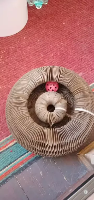 our kitty loves his new scratch board. even more so because of the added bell toy which keeps him entertained for hours on end. 🐾🔔