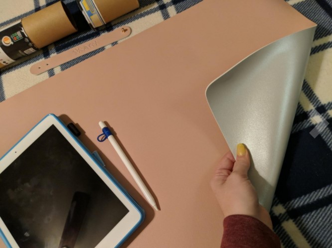 It's a good desk pad/cover to protect your desk for those like me that are picky with everything but it has flaws it slides back and forth not really what you expect for the money also I had to flatten mine out by putting something on it the edge parts aren't fully flat.And also the end part that hold to the desk doesn't really stay in place it slides back and forth so you kinda gotta play with it.Its not a big deal but gets annoying having to place it back every time you move your hand to fast.Its good material feels good gives some character to your desk and looks good at the same time.Protects a good amount of space on the desk would recommend to those with ocd and that are super picky on scratches and other imperfections or to hide imperfections.