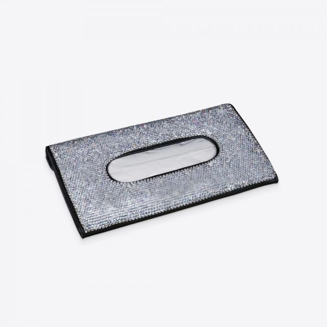 From your sun visor to backseat pocket, our White Rhinestone Car Tissue Box Cover is designed with a velcro strap for easy closure and sleek clips for a firm hold.