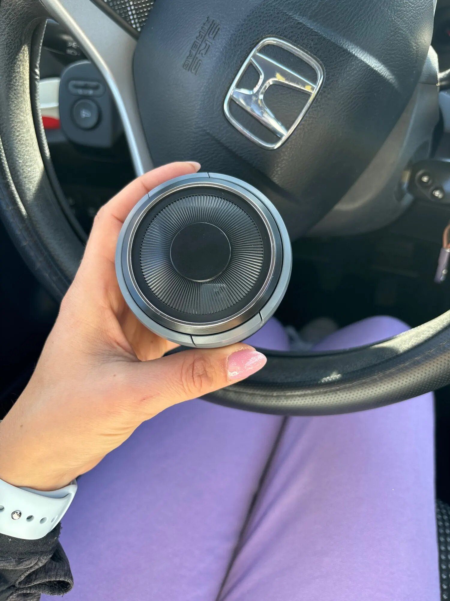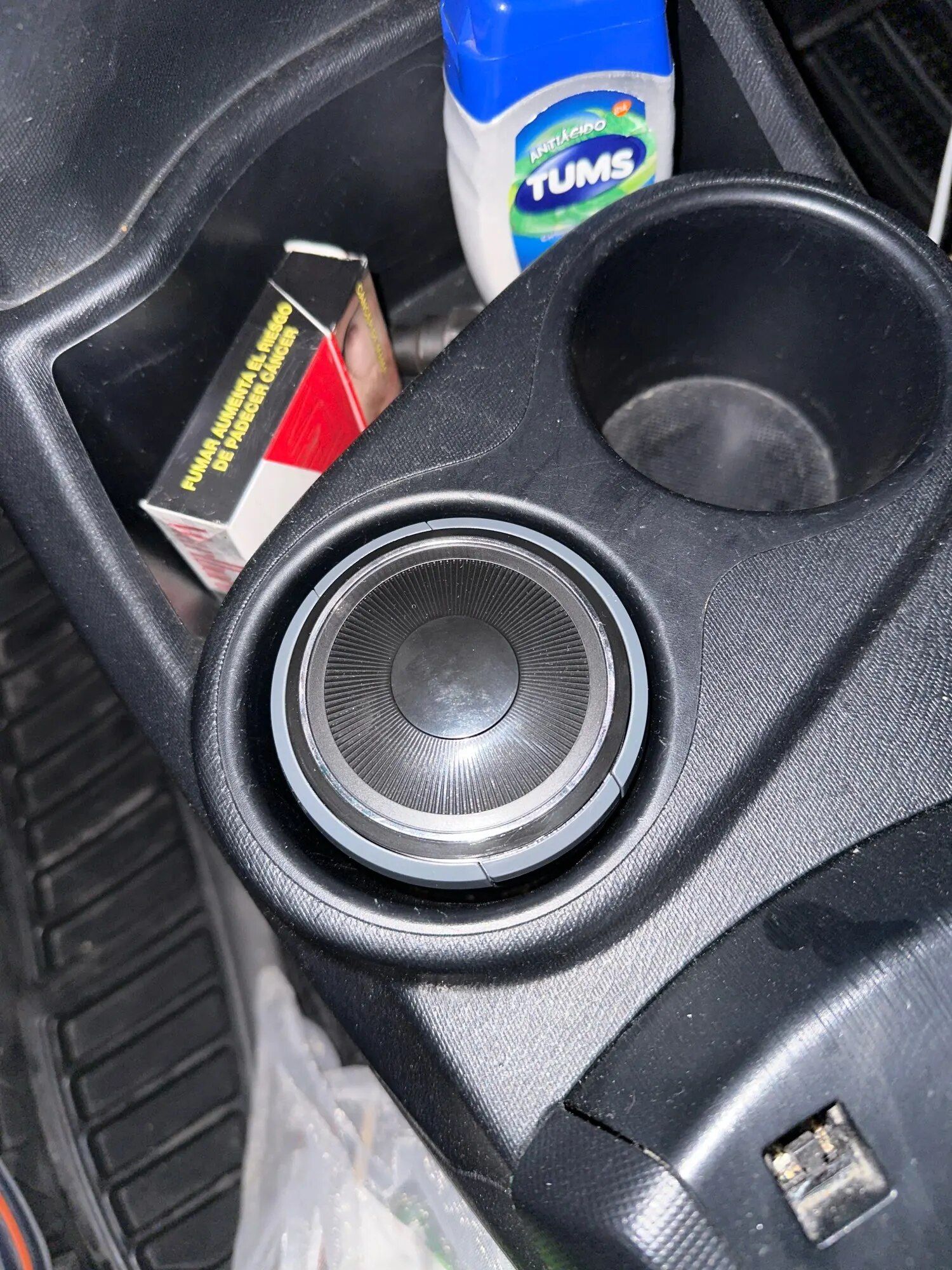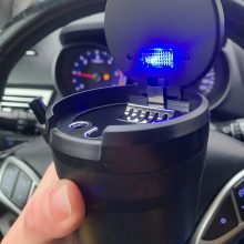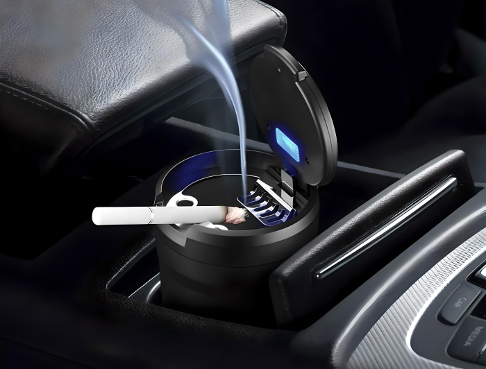 This ashtray is a fantastic little gadget that puts an end to tossing cigarette butts out the window. It fits snugly into cup holders, and the securely closing lid prevents any stale cigarette smell in the car. Cleaning it is effortless, and the internal light is a great addition for nighttime use.