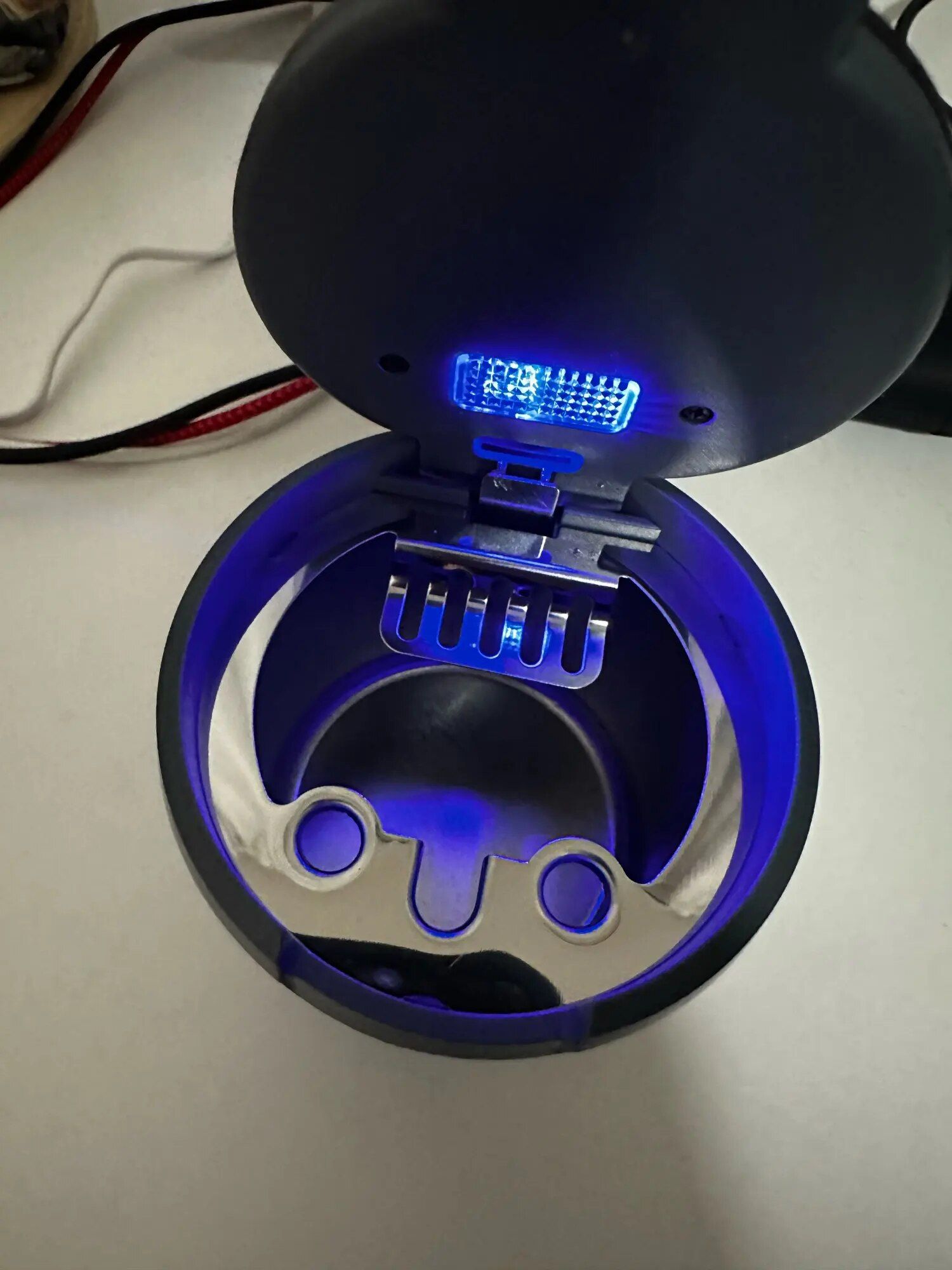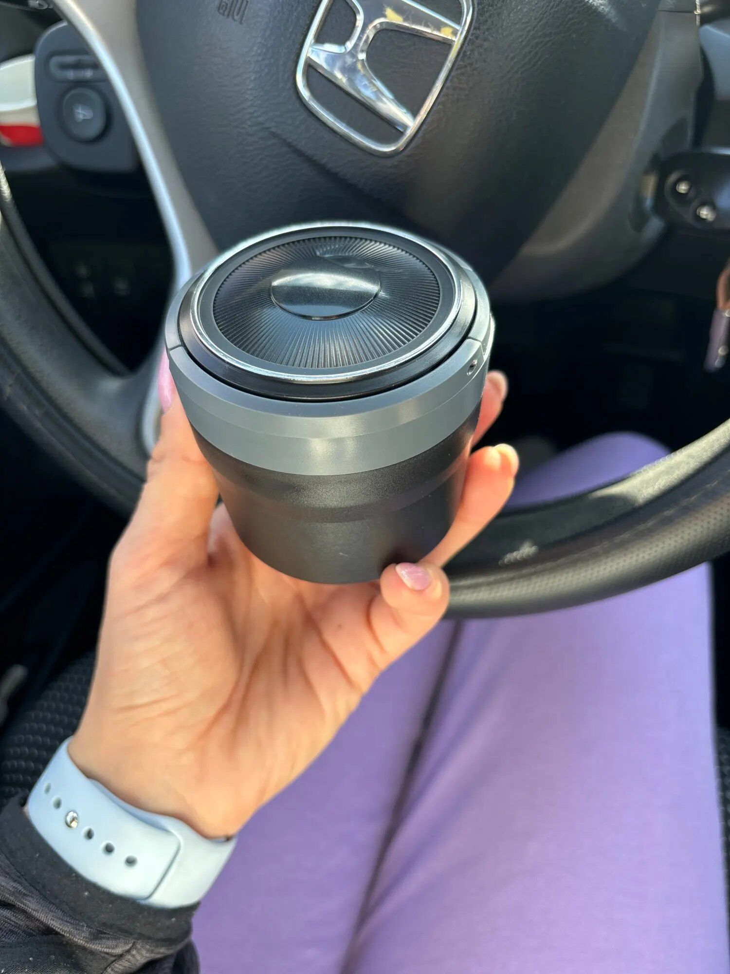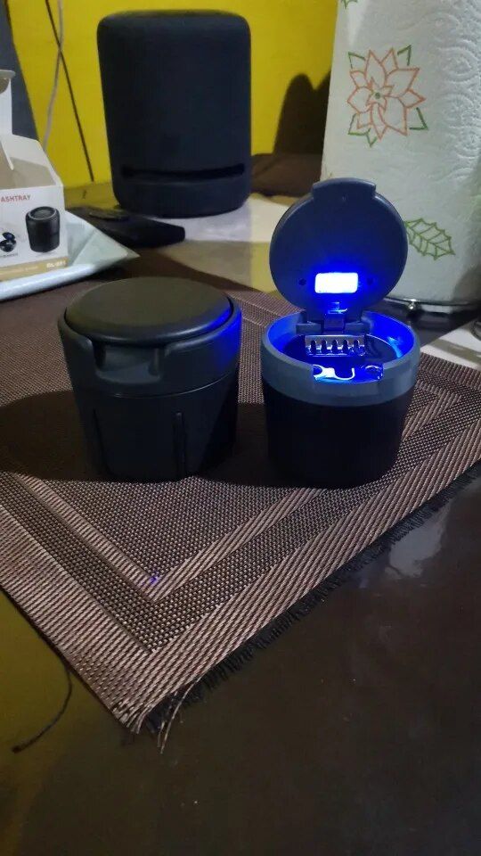 I must admit, it might sound amusing, but it's true. For years, my wife has been using a plastic water bottle with a small amount of water at the bottom as her makeshift car ashtray, much to my chagrin. So, when I stumbled upon this product, I was intrigued. I was particularly impressed by its seamless fit in the cup holder, complete with a lid and a discreet LED light for nighttime use. This ashtray effectively minimizes the lingering scent of cigarette ash and adds a touch of sophistication to the car interior. It's truly a worthwhile investment!