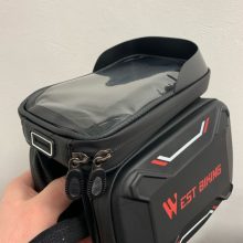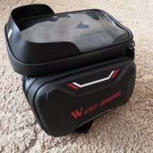 Great bag! Sturdy & doesn't rattle when off road. This was one of the only bags that I could find to fit my folding E-bike. Works great & is sensitive enough to use a touchscreen through it.